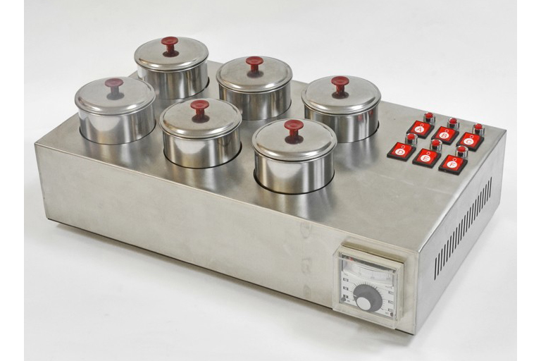 The water bath box generally has six buckets, all of which are made of stainless steel;