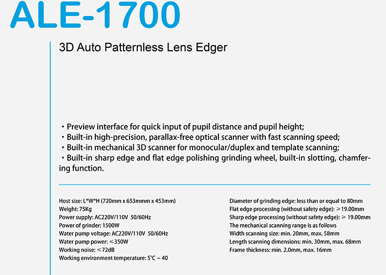 ALE-1700G 3D Patternless Auto Lens Edger with grooving mechanical scanning function $ Login Add to cart