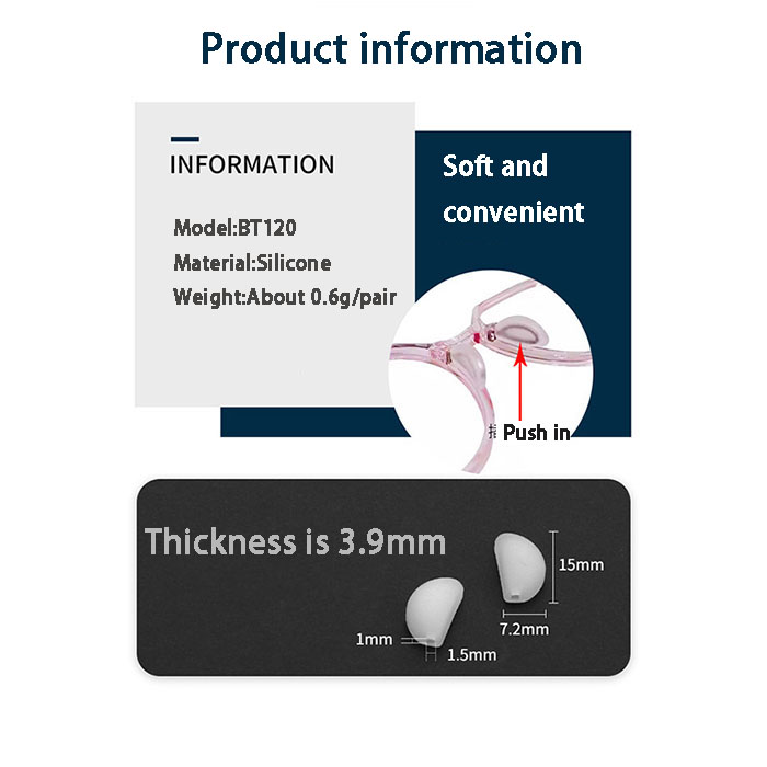 See video BT123 Integrated saddle glasses nose rest, silicone+plastic+metal core nose rest, screw lock type, transparent saddle nose rest $ Login See options