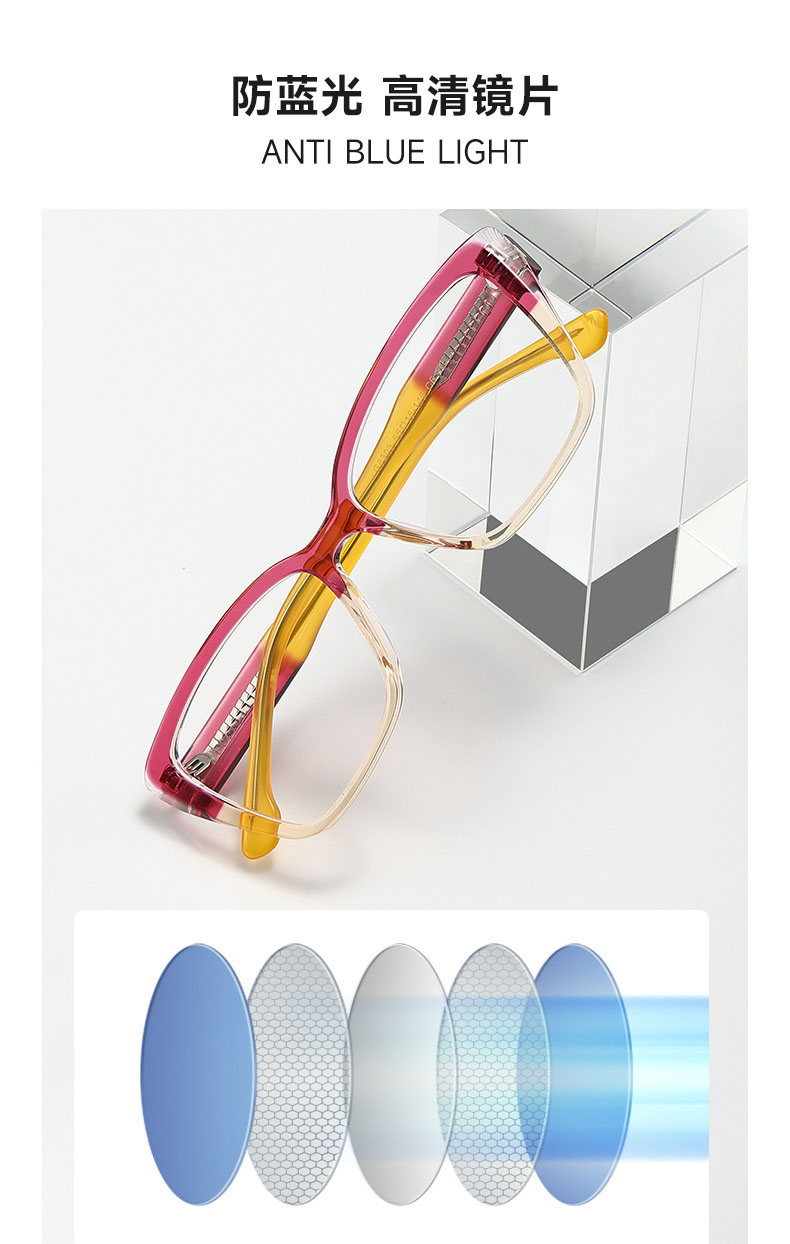 G6248 Stylish striped handmade acetate eyeglass frame, blue block lenses, for men and women