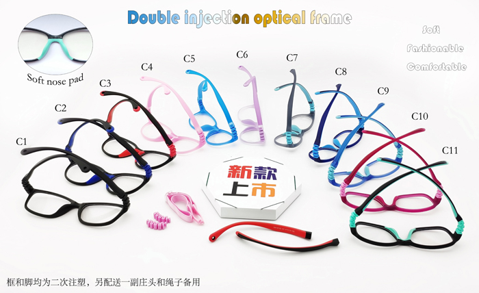 USD6.4/PC 8, DM series TR90 Kid colorful memory temples, 26 models
