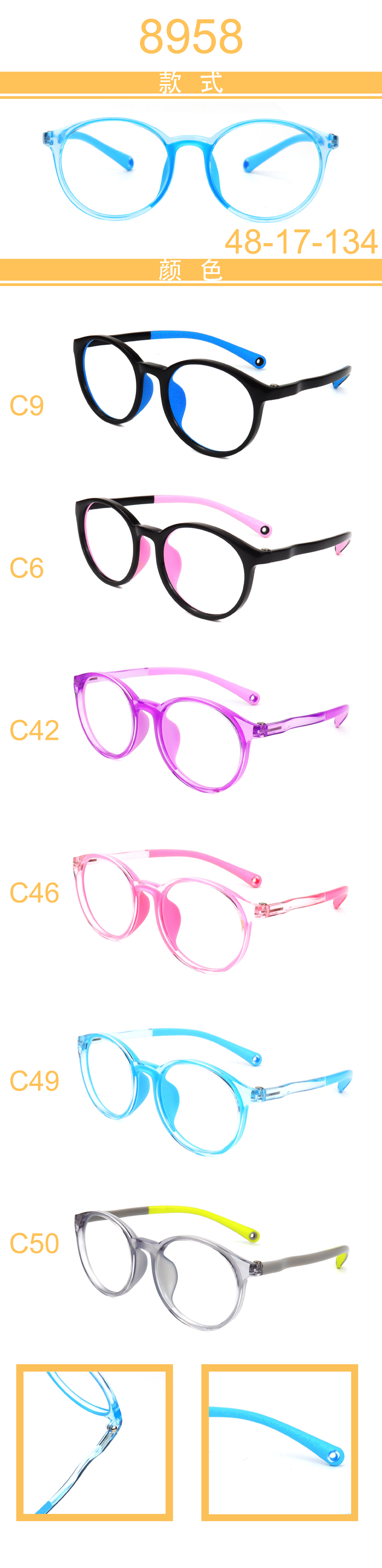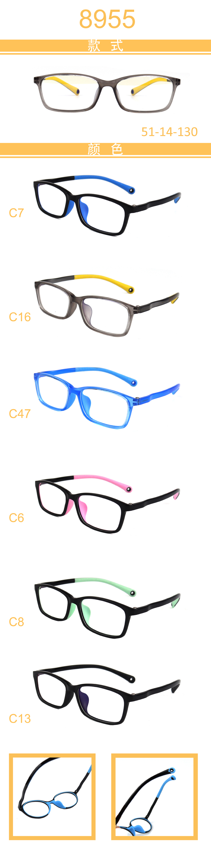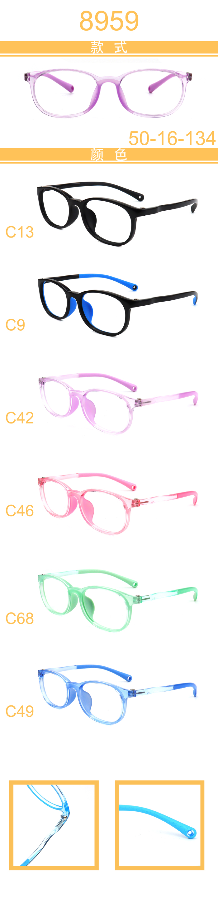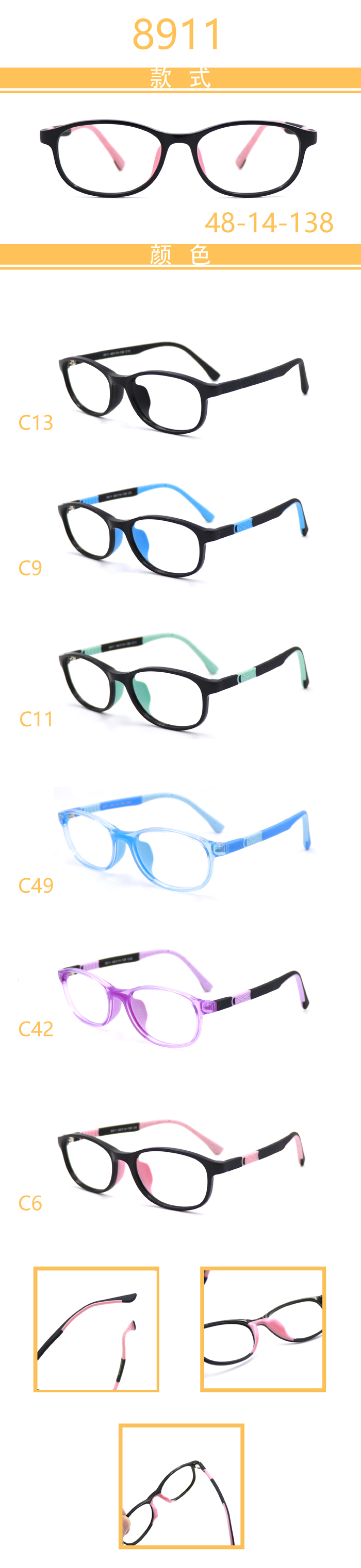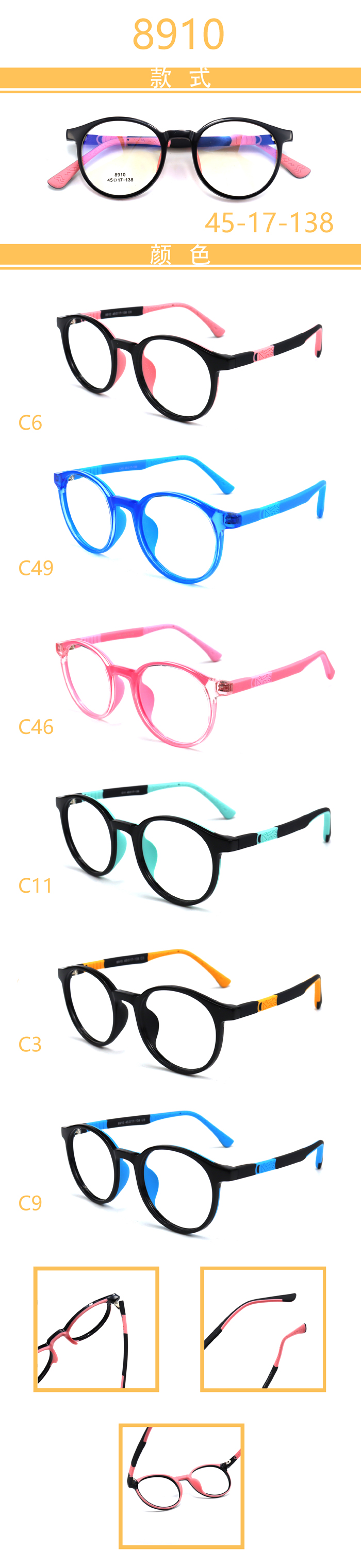 USD5.7/PC DM series kid double color temples, integrated nose pads, TR90 frames, 10 models $ Login Add to cart