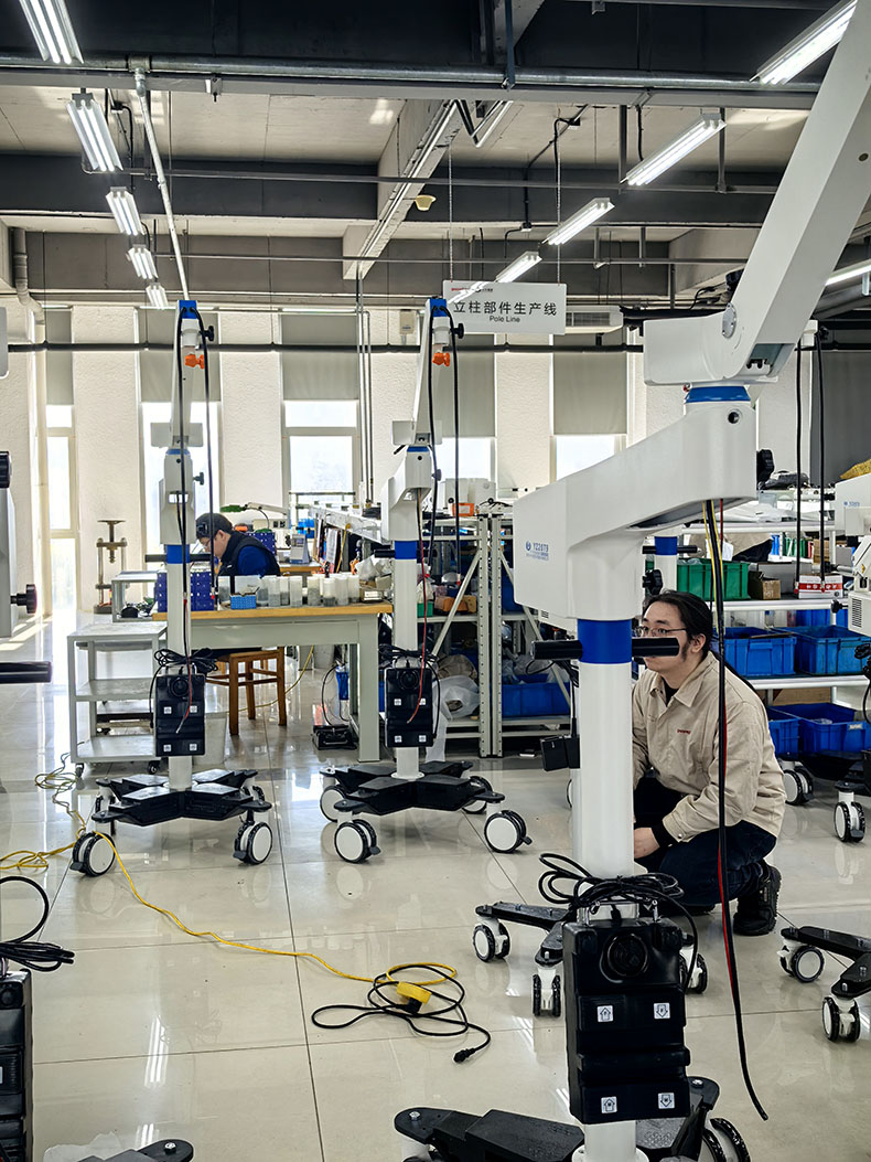 The product is a double binocular operation microscope designed for two men.It has excellent optical performance and it is comfortable to be used.